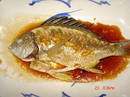 焙った油を魚の上からかけたら出来上がり。初めて作ったにしては上手に出来ました。