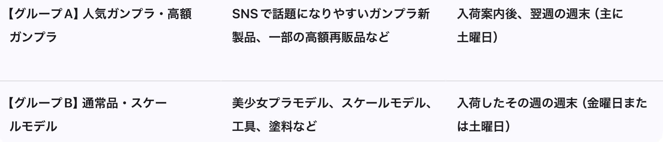 いつも当店をご利用いただき、誠にありがとうございます。昨今のガンプラをはじめとするプラモデルブームは大変喜ばしい一方で、「手に入らない」「並んでも買えない」「転売が横行している」といった声が多く聞かれるようになりました。当店は、これまで事前予約などを通じて常連様へのサービスを維持してきましたが、「本当に欲しい新規のお客様」にも、落ち着いて購入のチャンスを提供したいと考え、この度、思い切って販売方法を大きく変更いたします。この変更は、短期的な売上を追うのではなく、お客様と当店が「長く、心地よく付き合っていける」関係を築くための大きな一歩です。💡 当店の新しい販売ルール:2つのグループに分けます人気アイテムと、比較的供給が安定しているアイテムで販売タイミングを分けます。なぜ「人気ガンプラ」だけを1週間遅らせるのか?(お客様のメリット)当店がこの決断をした最大の理由は、「並び疲れた皆様に、もう一度チャンスを提供したい」からです。1. 「最後の砦」として再チャンスを提供• 週末、他店で手に入らなかった方も、当店では翌週に販売チャンスが巡ってきます。当店を「諦めずに済む、最後の頼みの綱」としてご利用ください。2. パニック買いの排除と購入の質の向上• 発売日直後の混乱や、転売目的の「とりあえず買い」の波を避けることができます。本当に欲しい、「1週間待ってでも買いたい」という熱意のあるお客様に、落ち着いて商品をお届けします。3. 情報が深く浸透する• 1週間かけてじっくりと入荷アイテムの情報をSNSや動画で告知します。「来週の土曜日に何が並ぶか」が明確になるため、無駄足を踏むことなく、確実に来店計画を立てられます。4.事前予約は従来通り継続・事前予約は今まで通りに今後も行って行きます。方法などは時勢に合わせてその都度変更はあるかも知れませんが、常日頃利用されて下さる皆様を最優先する姿勢に変わりはありません。ここからは、今度は私と店の都合🤝 店側の都合:より良いサービスを続けるためにワンマンで運営している当店が、お客様に安定して質の高いサービスを提供し続けるために、以下の理由でこのシステムが必要不可欠です。1. 激務によるミスの防止とサービス品質の維持• 入荷日(金曜日)の検品・品出し作業が集中すると、ミスが発生しやすくなります。このシステムにより金曜日の負荷を大幅に減らし、落ち着いた状態で入荷作業と、土日の接客に専念できます。2. 「考える時間」の確保• 1週間待つ間に、他店の販売状況や市場の需要を冷静に調査できます。その結果に基づき、本当に皆様に喜ばれる販売施策(例:関連商品の紹介、陳列の工夫など)を準備できます。📅 当店の新しい販売ルーティン• 金曜日: 入荷・検品後、動画で全アイテムを紹介。ガンプラ以外は店頭へ。• 土日: 前週分のガンプラと、今週入荷の美プラ・スケールモデルなどを販売。• 平日: 週末のガンプラ販売に向けて、SNSで毎日告知。• 翌週末: 事前告知していた人気ガンプラが店頭に並びます。この販売方法により、当店は「慌てず、落ち着いて、本当に欲しい商品が手に入る店」というブランドを築いていきたいと考えています。皆様にはご不便をおかけする点もあるかと存じますが、この新しい取り組みへのご理解とご協力を心よりお願い申し上げます。さあ、来週のチャンスを掴みましょう!