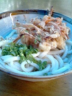 何にしましょう?と愛想良く聞かれます。メニューは見当たらないので「冷たい…小で」とお願いしました。しばらくすると丼に入ったうどんが登場♪天ぷらは沢山種類があります。私はかき揚げをチョイス。お会計は後でもいいと言われましたが、先に支払いました。240円。