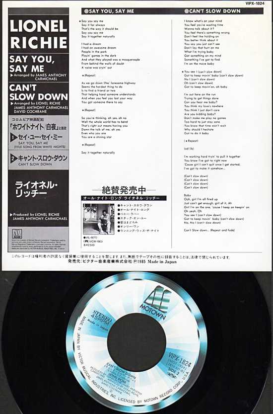 B面「Can't Slow Down」 作詞・作曲 Lionel Richie・ David Cochrane