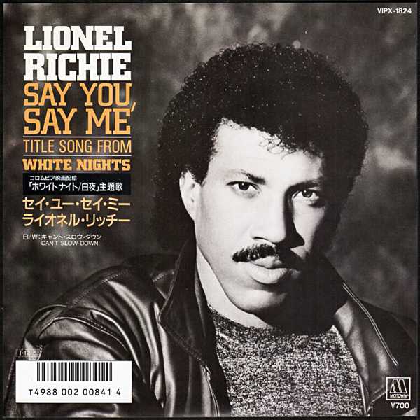 これからも聴き継がれて行く名バラードのひとつです。 映画にも惹かれたのもあって、この曲は印象に強く残ってる。 最初はかなり強引とも思えた展開部分も感動できる部分のひとつになってる。 ギターはSteve Lukatherが弾いています。 ライオネル・リッチーの歌うバラードはコモドアーズ時代の「Three Times A Lady」「Easy」 「You Don't Know That I Know」「This Is Your Life」などすぐに思いつくだけでも これだけある。 「Say You, Say Me」、当時流行り過ぎたのもあって、しばらくあまり聴いてなかったけど 今日、シングル盤で聴いてみて楽曲の良さを再発見した感じです。