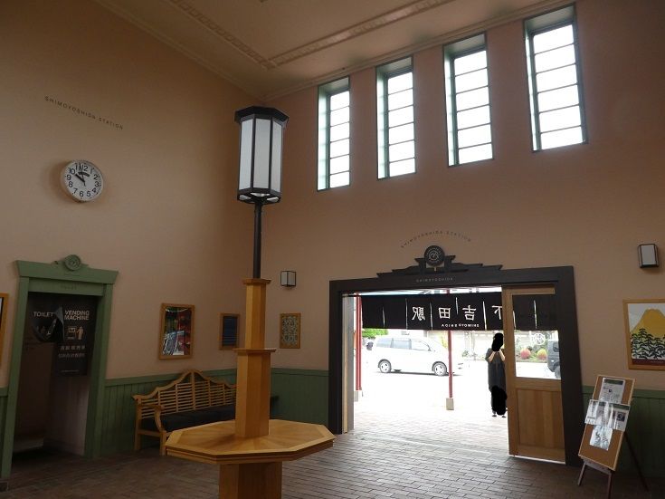 2009年にリニューアルされた駅舎はコンクリート平屋建てで、工業デザイナー水戸岡鋭治によるデザイン。待合所部分の天井は高く、明かり取りの窓も作られている。現地の案内看板によると、この駅舎は終戦当時の名古屋駅を模したものだという。駅舎の内部、旅客の立ち入ることの出来る部分にはその他有人の窓口が設けられているが、自動券売機の設置はない。かつては直営駅であったが1978年(昭和53年)から業務委託駅となっている。改札外に清潔なお手洗いがある。
