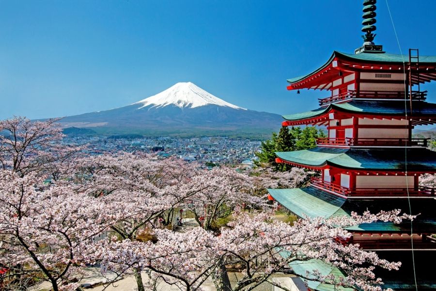 やっぱり春が一番ですよ。五重塔と桜と富士山と。