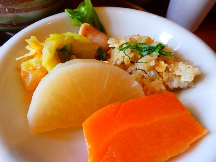 一番向こうのお皿はチャーハンです
