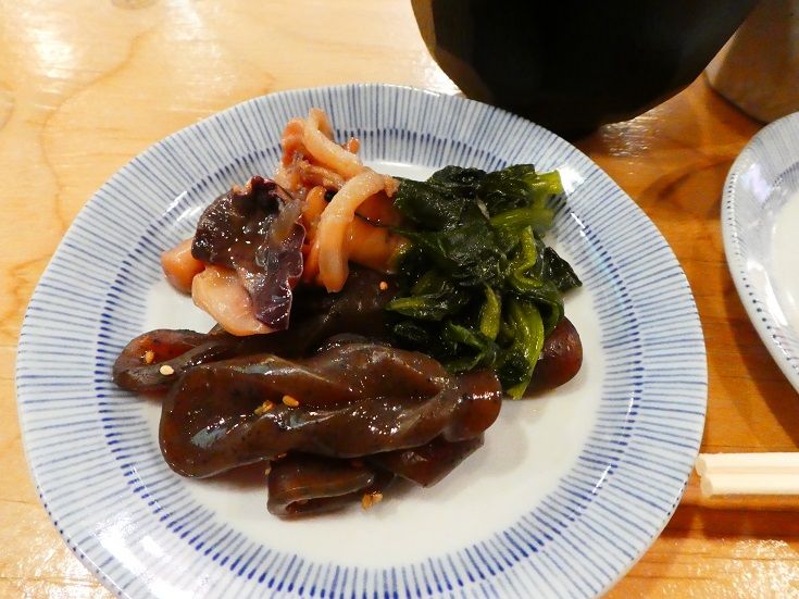 コンニャクの甘辛煮とカツオ菜のおひたしと