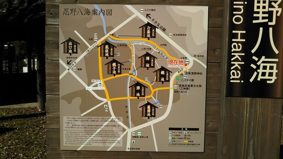 湧水となって8か所の泉をつくる。