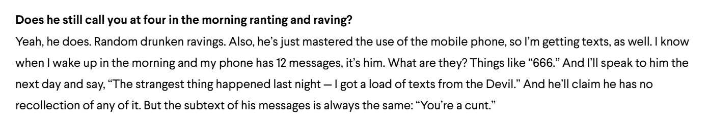 彼(リアム)は相変わらず朝の4時に電話をかけてきて、わめき散らしてるの?