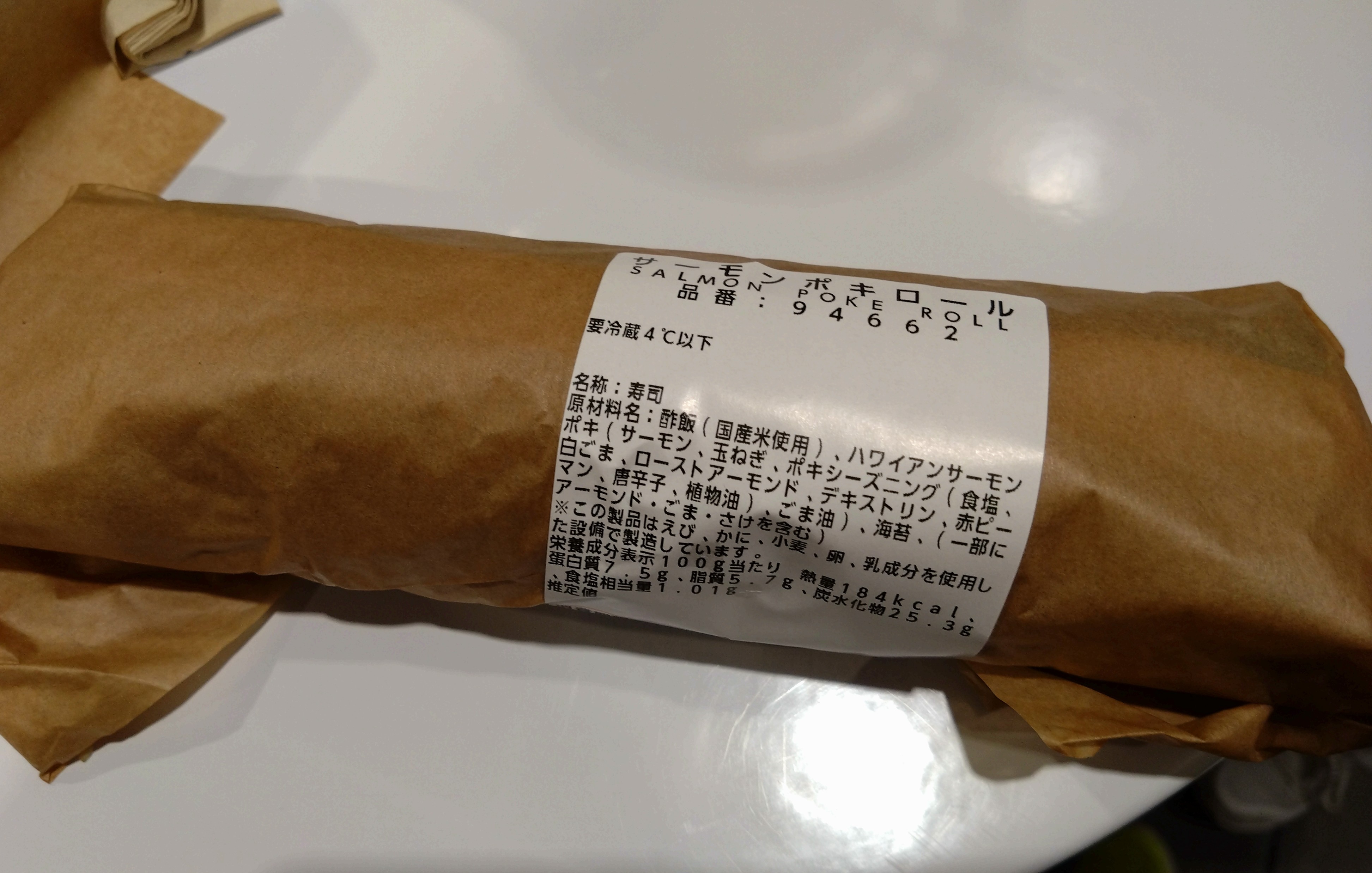 2025.1月購入サーモンポキロールお値段:¥700✰⋆。:゚・*☽:゚・⋆。✰⋆。:゚・*☽:゚・⋆。フードコートにご飯ものが登場!!寿司狂いの長男歓喜!!包を開けると8個にカットされていました。お箸はありません。ホットドッグ用のセルフケチャップ&マスタードの辺りにあったご自由にどうぞのフォークとかがいつの間にか無くなってしまったので、注文時にフォークを貰うのが良いですね。断面図を撮り忘れましたが💦サーモンポキたっぷりで美味しかったです。原材料シンプルなのも良き✨ちょっと高額だけど。。定番になって欲しいなぁ。