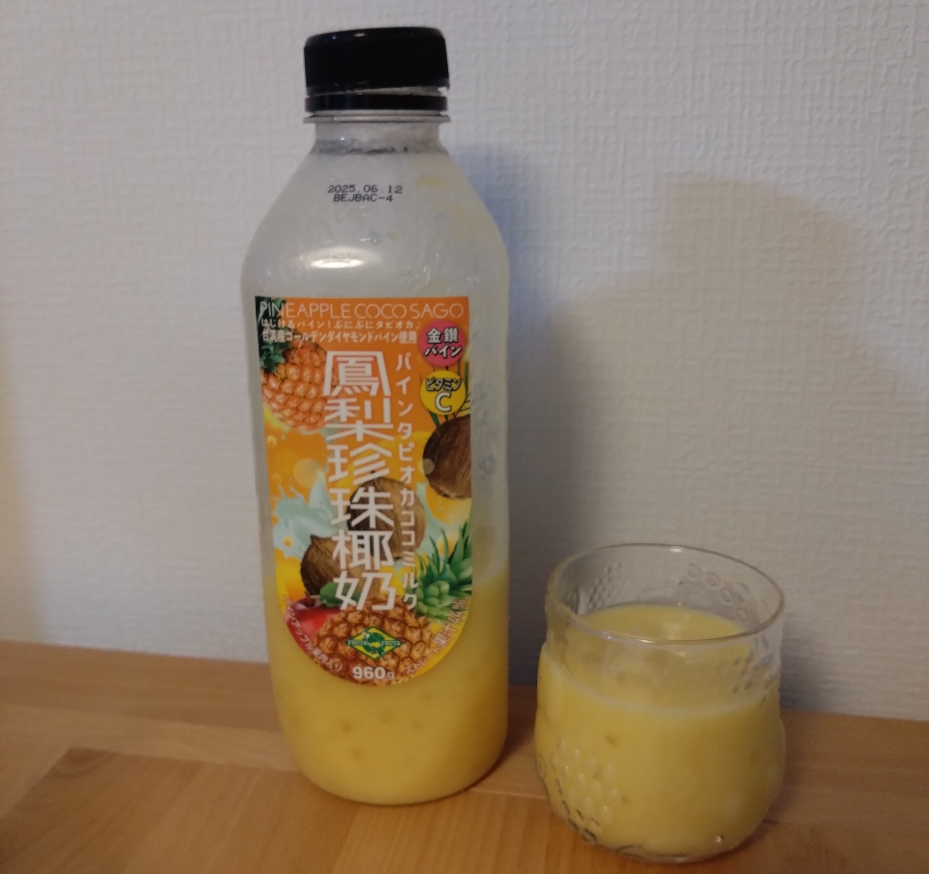 2025.5月購入パインタピオカココミルクお値段:¥948内容量∶960g✰⋆。:゚・*☽:゚・⋆。✰⋆。:゚・*☽:゚・⋆。※原材料※パインアップル、タピオカボール(液糖、こんにゃく粉、タピオカでん粉、寒天)、果粒(パインアップル)、りんご、パッションフルーツ、ココナッツミルク、砂糖、液糖/酸化防止剤(ビタミンE、ビタミンC)原産国:台湾台湾産ゴールデンダイヤモンドパイン使用ということで全面パイン🍍🍍🍍ココナッツミルク感は少ないてす。甘いパインを使っているので基本パインの甘さなんでしょう。甘さ控え目です。原材料の中で砂糖は最後の方です。果粒たっぷりでとろっとしてます。タピオカもたっぷりなんだけどボールじゃなくて細かくカットされてるので、タピオカって感じがあまりないような…トロピカル〜♪で美味しいけど、ココナッツミルク大好きな私としては、もうちょっとココナッツ感欲しかったなぁ。