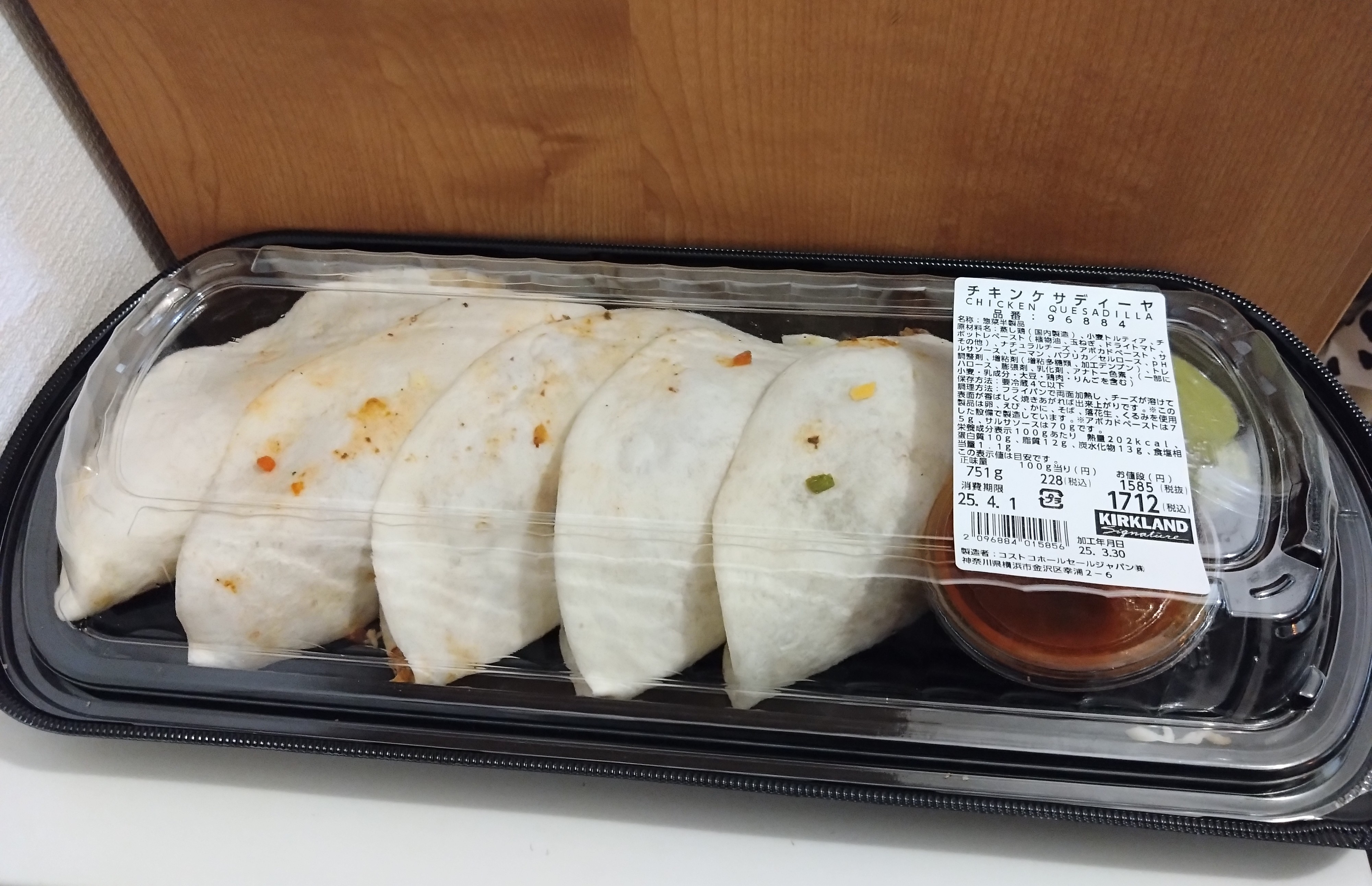 2025.3月購入チキンケサディーヤお値段:¥1712100g当たり¥228✰⋆。:゚・*☽:゚・⋆。✰⋆。:゚・*☽:゚・⋆。ケサディーヤとはトルティーヤにチーズ等を挟んで焼いたメキシコ料理らしい。メキシカン大好き♡調理方法フライパンで両面加熱し、チーズが溶けて表面が香ばしく焼き上がれば出来上がりです。中身はほぼ蒸し鶏!チポットレペーストで味付けされていますが後味ほんのり辛いかな、程度の辛さです。チキンたっぷり!+チーズ✨美味しいー(*´꒳`*)❤︎別添えのアボカドペーストとサルサソースをつけて食べても美味しい。子供たちは好きじゃないかなと思ったのですが、辛くないからか子供たちも美味しい!と言ってパクパク食べてました。家族全員好きな味なので次に見かけたら2パック買いたい!《追記》辛い物が得意ではない小学生の子供が「ちょっと辛いけどお茶を飲みながら食べれば大丈夫。美味しい!」と言いながら食べていました。私は辛い物好きなのでよく分からなかったけと、ちょっと辛いのかもしれません💦