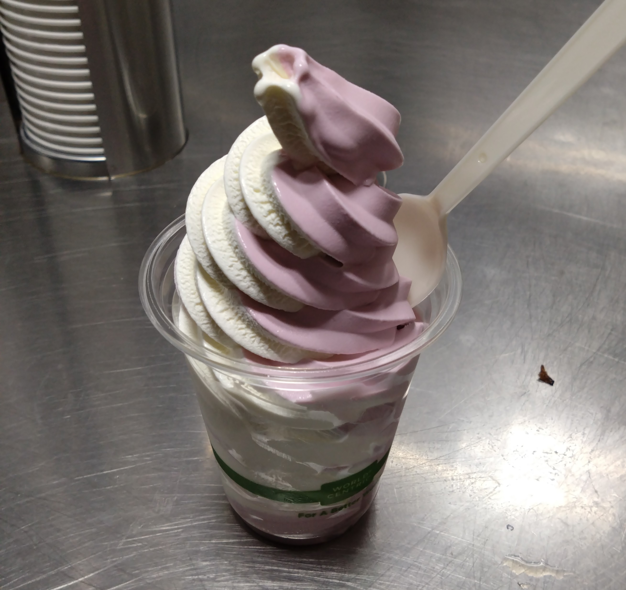 2025.1月購入北海道ソフトクリーム 紅芋ミックスお値段:¥300✰⋆。:゚・*☽:゚・⋆。✰⋆。:゚・*☽:゚・⋆。パープルが可愛い♡紅芋かわからないけどまったり濃厚な焼き芋みたいな味!苦手な人もいるかもだけど私は好きなお味でした♡