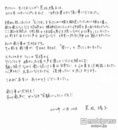 直筆メッセージを寄せた荒牧は「2012年12月いっぱいをもって、一時休業させて頂く事になりました」と発表。「ここ数ヶ月間は、微熱と体調の悪さを隠しながらお仕事をしていました。以前まで出していた声も出せなくなり、将来に対する不安とも戦ってきました」と苦悩を明かし、「スタッフの方やファンの皆様からアドバイスや暖かい応援の声を頂いているにも関わらず、騙し続けながら歌い続ける事は出来ないと休業を決断致しました」と説明している。