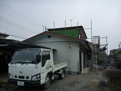 今日も朝からフル回転中なブイマですいい天気で現場も進みますリフォーム中の現場 ブイマの事務所から歩いて5分!ご近所で頼んで貰えるって幸せです冬の寒い時期にお打ち合わせしてストーブをつけてても壁からの放射冷却が凄い感じ「もしかして断熱材入ってないかも知れませんね」とお話させていただいてましたが外壁材を剥がすと、やはり・・・防水紙は勿論、あるべきものが無いお金を出せばそりゃ優れた断熱材も入れる事ができるでも、お客さんの「予算」もありますそこをどう提案して形にしていくか腕の見せ所ですねいいタイミングで「住宅板エコポイントのぼり旗」が届きました現場案内看板の横にさりげなくさりげなくないか(笑)でけーよ(汗)そしてまたブイマの事務所から歩いて2分の幼稚園子育て支援センター10年前に企画・設計から施工までやらせていただきましてクロス割れ補修メンテナンスですファイバーテープとパテ使ってるんですが、開口部上って弱いな~吹き抜け勾配屋根の壁なのですが、一番応力集中してる感じです先生方が毎日ピカピカに磨いてくれてて嬉しくなっちゃうな子育てに、ペンション風で温かい雰囲気という設計コンセプトこの頃デライト知らなかったしな(ってか無かったか)今だったら迷う事無く提案するんだけど・・・さて、休憩もほどほどに大工工事に行って参ります昨日、しもつけ百年定例会でした反省会はジャックブルーとガチンコで「一人で何でもやりすぎ」って言われちゃったヨ(汗)