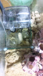 こんばんは~ 高校が始まって、 もう二週間ぐらい経つんですね~ 早いものです 家庭学習サボり気味ですw 海水プールにフィルターを取り付けてから、 早数日ですが、 相変わらず、イシダタミは逃げ、フジツボはうにょうにょ動いてます それで、 海ヤドには陸地が必要なのでしょうか? どこかのサイトでは、 必要ない、と記されていましたが、 家のヤドたちは特別なのか 逃げもしないのに 陸にあがっていました この件については 研究する余地がありそうですね うん、では今日はこれで