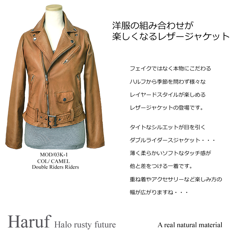 レザージャケット 本革 ダブルライダースジャケット レディース 革ジャン ダブル ライダースジャケット ブラック キャメル バイク レザーコート 03K1