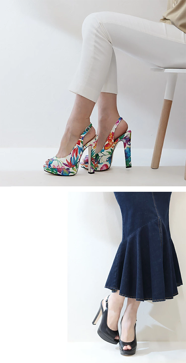 レディース パンプス サンダル 本革 オープントゥ 太ヒール13cm コメックス COMEX