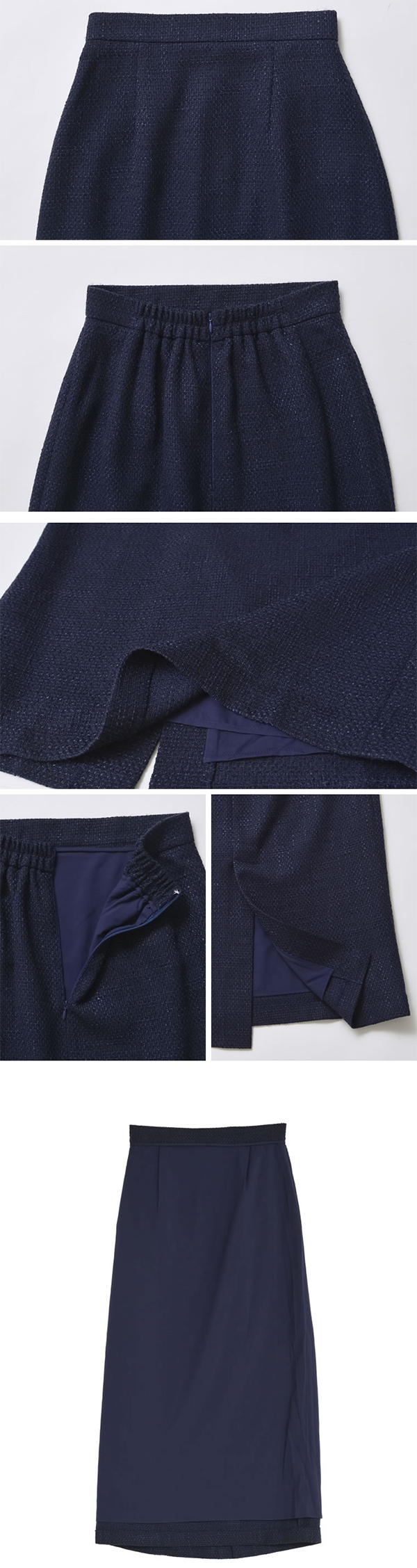 レディース ツイード タイトスカート 84~94cm丈 バックスリット バックファスナー Re:EDIT