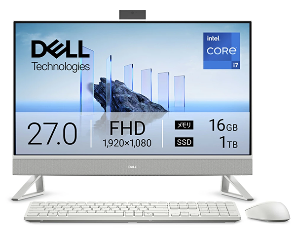 DELL|デル 27型 オールインワンデスクトップパソコン Dell 27 AIO EC27250(Core i7/ メモリ 16GB/ 1TB SSD)- パールホワイト AD69-FNNJ