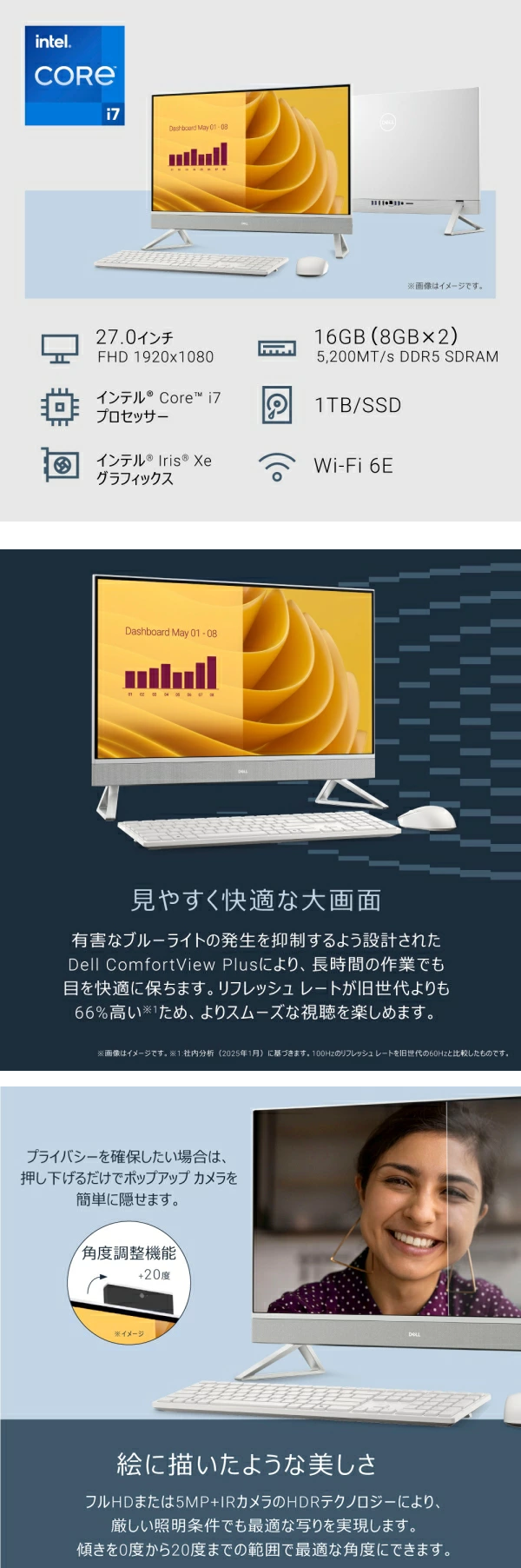 ▶ 楽天市場のサイト: 新品 デスクトップパソコン PC 27型一体 デル Dell AIO EC27250 13世代 インテル Core i7 Windows11