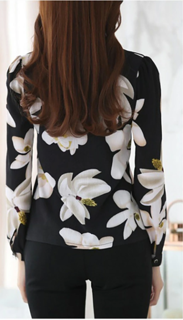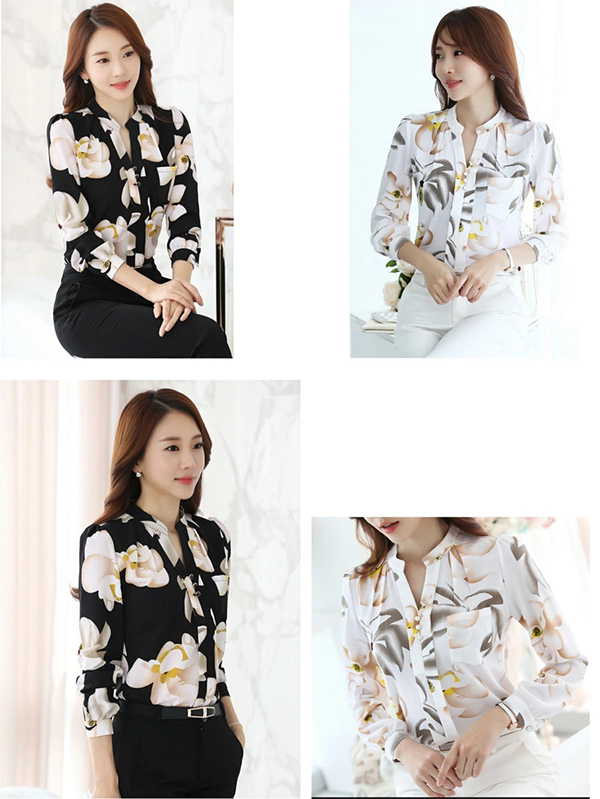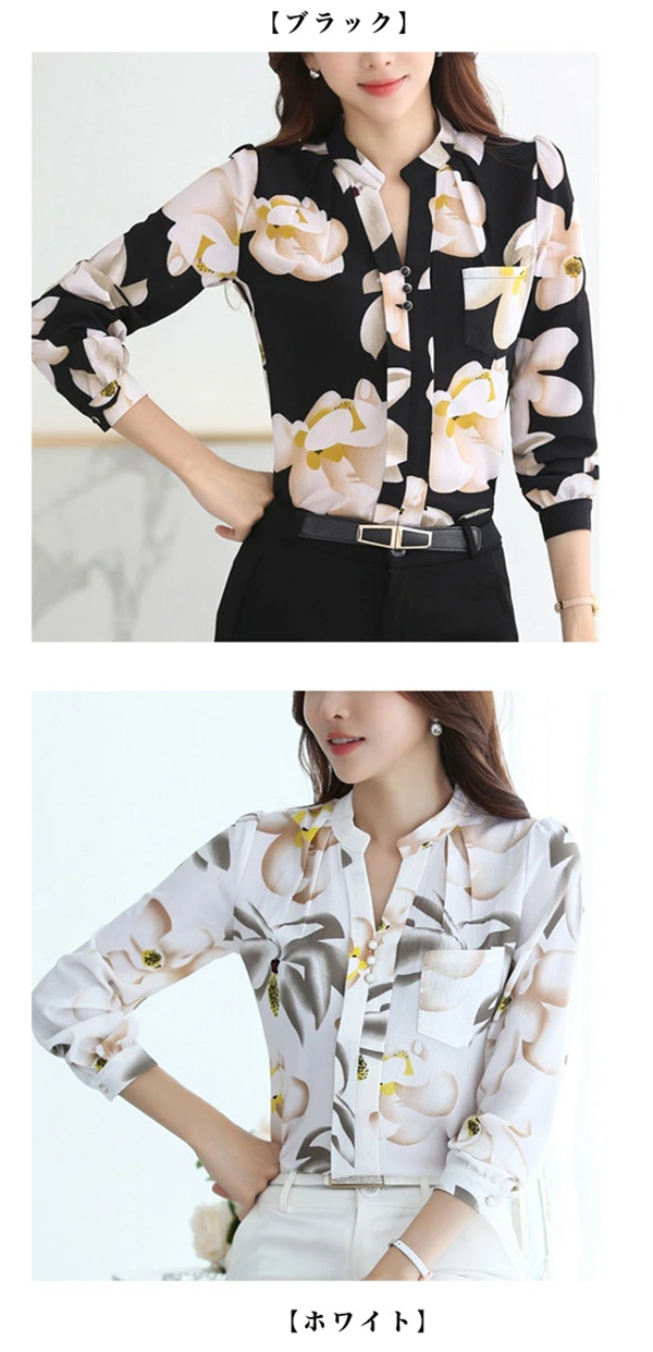 シフォン ブラウス フォーマル オフィス レディース 長袖 トップス シャツ 七分袖 春 夏 秋 冬 大きいサイズ おしゃれ パーティー Vネック 大人 上品 きれいめ 花柄 大人可愛い ビジネス 通勤 黒 白 xl