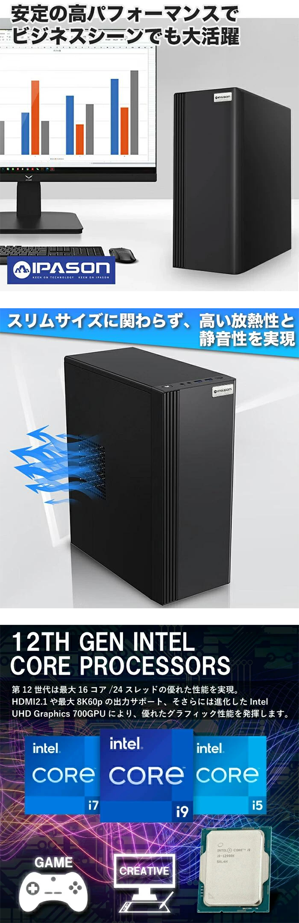 ▶ 楽天市場のサイト: 新品 デスクトップパソコン PC IPASON G-SLIM S3 12世代 Core i5-12400F Windows11