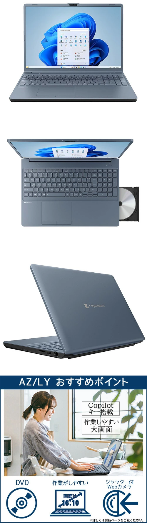 ▶ Amazonのサイト: dynabook AZ/LY Webモデル (Windows 11 Pro /365 Basic + Office Home & Business 2024(デスクトップ版)/16.0型/第13世代 Core i5/SSD/アッシュブルー)
