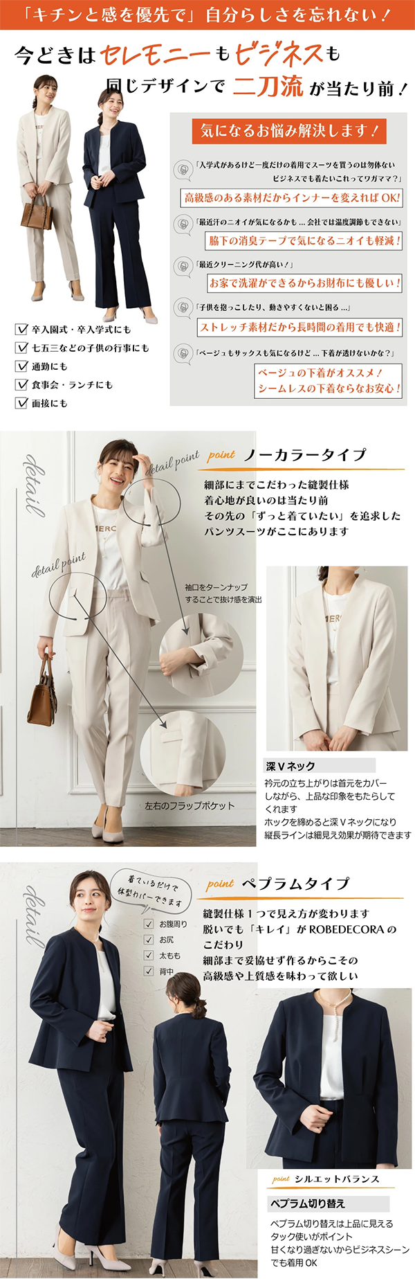 【ペプラムタイプ】【ノーカラータイプ】の2つのタイプから選べます!