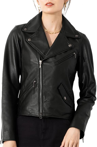 LIUGOO 本革 ダブルライダースジャケット レディース リューグー DRY08LA ライダースジャケット レザージャケット 革ジャン 皮ジャン 本革ジャケット 黒 天然本皮 リアルレザー アウター ジャンパー 海外発送可