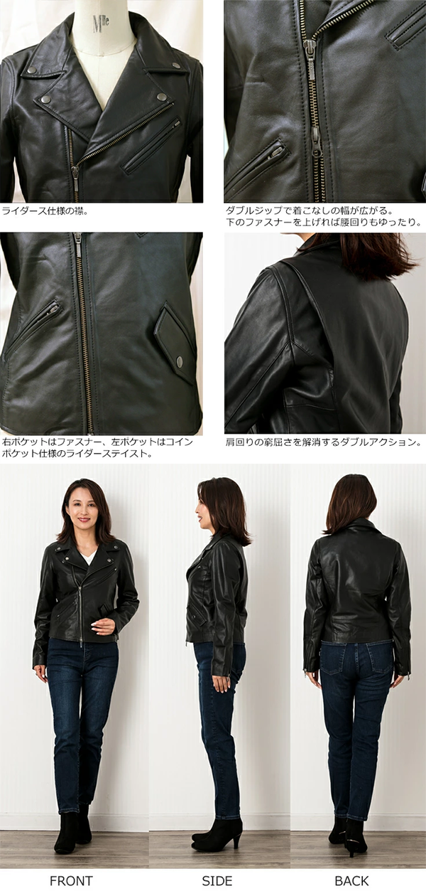 ▶ 楽天市場のサイト: レディース ダブル ライダース ジャケット レザー 本革 DRY08LA LIUGOO