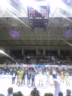 清々しい冬空の中、那覇市民体育館で行われている、bjリーグキングス対滋賀戦を観戦してきました。