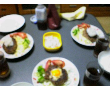 学校の、先生・・・・って、あたしは、どうも苦手xxxxだから、今朝、息子の顔見たらまだ、目の周り腫れていたので・・連絡帳に、昨日の『殴られた喧嘩』の事書きました・・・詳しくは、書かなかったけど、親の『せっかん』と勘違いされるのは、嫌だったからなのですがxxxxそれと、学校で、痛がったら困るのでね・・・・そしたら、学校で、その男の子と、うちの息子二人呼ばれて・・・・『人を殴るとは・・』について、お話して、両者の言い分聞いて、握手させてくれたそうです・・・・凄くないですか??こんな先生まだ、いるんですね・・・いまどき、学校の先生って、知らぬ存ぜぬって先生多いのにね・・・・担任は、中年の女の先生です!!でも、息子も、納得できたようでした・・・・本当に、ありがとうございました・・・・・今日は、本当に、『ありがとうございました』って言いたい・・・ 今日の夕食!!癒し猫ちゃんの大好きな、『ハンバーグ定食』でした・・・・