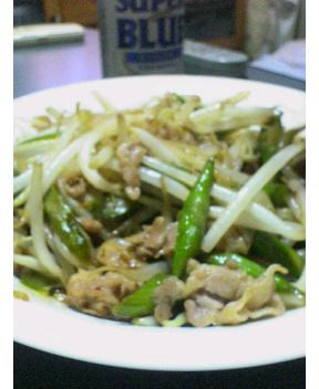 今日の、《あるある大辞典》 みんなも、見てみて・・・・・ 《熱中症》 ほんでね・・・・夏ばて防止料理 「アスパラ・豚・モヤシオイスターソース炒め」 早速、旦那さんのリクエストで、作ってみました・・・・ お酒のアテとなり、旦那さんのお腹の中に・・・・