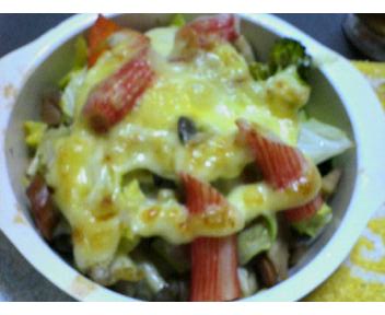 今日も、朝から、元気??オッ、体調良いじゃんそう、思って、で、いざ、お仕事・・・・それにしても、本日も、蒸し暑うございました・・・・お仕事、終わりかけ・・・・なんだか??ちょっとしんどい・・・・そう、そこから、急降下頭が痛い・・・そして、体が、火照ってる・・・・・早めに、ねよっ・・・・となので、夕食は、手抜き・・・・・・『野菜の、マヨチーズ焼き』(キャベツ・鶏肉・ウインナー・ブロッコリー・人参・玉葱・かにカマ・シメジが、はいっております) ちょっと、いためて、オーブンで、焼いただけ・・・・・でも、そこそこいけたそうでした