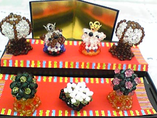 今年のビーズのお雛様は大幅にバージョンアップしました2009年バージョンのお雛様を作りました 今年はお雛様のお袖を改良してふっくらとなりました只今、レシピを製作中2.3日で出来上がります