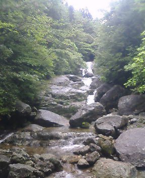 DAY 2 May,15旅に出る前には予習をしよう。本の知識だけでもだめだけど、折角すごいものを見ていても何がどうすごいのか分からなければ威力も半減する。その土地の有名なものを知っていれば、地元の人にも喜ばれるしな。というわけで旅の前に7,8冊は屋久島に関する本を読んだ。その中で読み応えがあり一番面白かったのがひかりのあめふるしま屋久島田口ランディ/幻冬舎文庫旅に役立ったのが屋久島・奄美 ブルーガイド 山登りで役立ったのが登山用地図の屋久島 昭文社フェリーで屋久島に渡った俺。天気も中々いい感じ。宿に荷物を沖、レンタカーで冒険に出かける。本当はバスで行く予定だったが便も少ないし料金もする更に頭にきたのは俺がネットで時刻表を調べてプリントしてきたのに4月にかわっていたこと。かえたならネットに書いとけー!まずはトローキ(轟)の滝川の水が直接海に落ちている。その上流の千尋(せんぴろ)の滝巨大な花崗岩の一枚岩で出来た谷に滝がダイナミックに落ちていく。 そして平中海中温泉潮が引いている間、一日二回しか入れない混浴露天風呂(水着禁止)ここでは携帯で写真とらんかったのでお見せできませんがデジカメで撮った写真は、白いケツと見えてるし色々ぎりぎりでした。硫黄の匂いが強いがよかったわ。それから樹齢300年の中間ガジュマル絵に描けといわれたら逃げ出すくらいに複雑な形。最後に落差80mの大川(おおこ)の滝これはメッチャ気に入った。1時間くらいボケーっと眺めたが飽きなかった。 分かりにくいけど、左下にチョコンといるのが人です。どれくらいデカイ滝かわかったかな?登って上がどうなってるのか見たいわ。上記の見所についてはこちらもどうぞhttp://www1.ocn.ne.jp/~yakukan/spot/spot.htm#toroki帰り道に急いでガソリンを入れ(6時には締まってしまう)車を返しスーパーで山用の食糧を買い込み、レストラン(という名前やけどラーメンや定食がメイン)でバカバカ食べ珍味の亀の手(岩にくっついている貝、見た目が亀の手みたい)も美味い。宿に帰ってこの日は終了・・・・するはずもなく買ってきた屋久島の焼酎を、滝で汲んだ水で割って飲む屋久島の川の水はどこでも飲めるし微生物が少なすぎて魚がほとんど住んでいないくらい澄んでいる。美味い美味すぎるー、ここでしか飲まれん味やー酒飲みながら無心の境地に達しそうな気がするあ、部屋にテレビが付いてる阪神勝ってるかな?ポチッ気がしただけやった続く