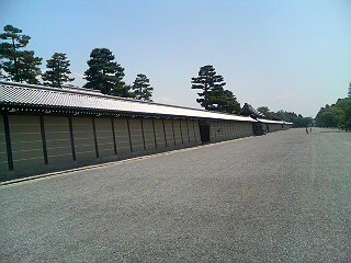 (続き)相国寺のすぐ近くには京都御苑。何度も京都には来てるけど、こんなトコ歩くのは始めてかも。広い、とにかく広い。神社だけでも3つ、警察署が一つある。、そして繁っている植物のエネルギーが只者やない先月の明治神宮と似た種類の物や。多分、多少人の手が入ってるんやろうけど、自然な木々の力を出して育っているんとちゃうかなあ。外国人観光客もちらほらみかける。英語で御所は Imperial Houseしかし、天皇を Emperor と訳すのにはかなり無理がある。1,000年近くも前に政教分離をした天皇制は、最高司祭という面からむしろローマ法王 The Popeに近い。ヨーロッパや中華文化圏の「皇帝」とはかなり違うし日本独自の制度なので訳しようがないねんけどな。御苑の中の御所にも前日までに申し込みをすると入れるって初めて知った。しかし俺みたいな不埒な輩を入れてもええのか?玉石の道は直射日光ジリジリでお肌に悪いので林の中を歩く。道の感触が凄い!落ち葉や枯れ木でとても柔らかい。3cmくらい掘ってようやく土が顔を出した。ディズニーランドやジブリ美術館は、テニスコートの様な特殊加工された道(多分古タイヤのチップが埋め込まれてる)で歩き疲れにくいねんけど、ここは自然に歩きやすい道になってる。木から落ちたものが腐らず、発酵する丁度いいバランスが出来てるんやろうなあ。西側の門、蛤御門に到着。ここで140年前に長州軍が会津、薩摩藩の警備隊と激しい戦闘を繰り広げ、今も門にはその時の銃弾の痕が残っている。日本の証人とも言えるアッツイ場所なのである。続く