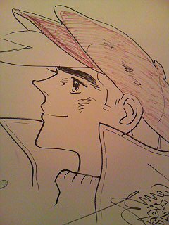 通勤ラッシュも既に終わった9時に朝帰り。前から行こうと思っていたけど、このまま行ってまうかと思い立ち京阪電車に乗って一路京都へ!しかしタイミングよく特急に乗れたがトイレに行けなかった電車の中にはトイレなし・・・20分後にはヤバイ、これはヤバイ。さっきの駅で降りればよかった。まじで限界だ、次の駅はまだか!遠い、遠いぞ!急げ電車よ、スクランブルぢゃ!大丈夫、大丈夫。ムリやなんて想像もするな!もしものときには空缶を探せ!と、切羽詰った状況の上京でしたが中書島で無事に途中下車。ああ、やばかった。終点の出町柳で降りて立命館大学へそこの相国寺承天閣美術館で伊藤若冲展をやっているのだ。6/3までなので行かれるならお早めに。チケットはローソンで買っていった方が安いですよ。平日の午前やのにメッチャクチャ混んでました天気も良すぎで、外の切符売り場で並ぶだけで日焼けしそう。伊藤若冲(1716年-1800年)は前から是非観たかったんや。色鮮やかな動植彩絵が有名やけど、水墨画も渋い。こんなん観たらおいらも画きたくなる!釈迦三尊像も細かい!凄い迫力や。そして一番好きな若冲の鶏の絵!こちらは漫画の「軍鶏」を元においらがシャツに画いた軍鶏 人が多すぎて酔ったのと、絵の迫力にあてられて小便漏らしそうな次は、ゲロ吐きそうになる俺!もっと広い間隔に絵をポツポツ展示すればいいのに狭い空間に集めるから、観客も集まってかなり見難い。俺より背が低い人はもっと見にくかったやろうなあ。それでも十二分に行った甲斐のあるクオリティーでした。