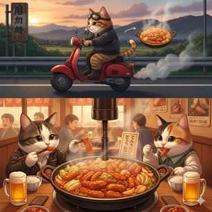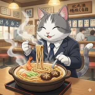 寒い季節がやってくると、にゃんこたちはこたつに潜り込みたくなるけど、北九州の街角ではもっとあったかくて幸せになれる魔法のごちそうがあるんだにゃ。それが、鍋焼きうどん!土鍋の中でぐつぐつ踊るうどんたちが、まるでダンスパーティーみたいに楽しくて、見てるだけでしっぽがふりふりしちゃうにゃ。※北九州の鍋焼きうどん 画像はAIによる生成(Gemini使用)まずは、スープのステージに注目にゃ。北九州の鍋焼きうどんの出汁は、ただのスープじゃないにゃ。鯖節に昆布に椎茸、みんなが仲良く手を取り合って、深い旨味のハーモニーを奏でてるにゃ。その音色は、口に入れた瞬間にふわっと広がって、まるで森の中で風がささやくような優しさにゃ。ちょっぴり甘くて、でもしっかり芯がある、そんな味わいが北九州のうどん魂を感じさせてくれるんだにゃ。お醤油の香りがふんわり漂って、黄金色のスープがキラキラ光ってるのを見ると、もう我慢できなくてぺろりんしたくなるにゃ。そして、うどんの主役たちが登場にゃ。北九州の麺は、ふにゃふにゃじゃないにゃ。つるんとした喉越しに、もちもちの弾力、そして煮込んでもへこたれないコシの強さ。まるで鍋の中で踊るにゃんこたちみたいに、元気いっぱいで最後までしっかり存在感を保ってるにゃ。出汁をたっぷり吸い込んで、味の衣装をまとった麺たちは、ひと口食べるたびに「にゃんて美味しいの!」って叫びたくなるにゃ。※北九州の鍋焼きうどん 画像はAIによる生成(Gemini使用)具材たちも、まるでカラフルなパレードにゃ。海老の天ぷらはサクサクで、跳ねるように鍋の上で踊ってるにゃ。鶏肉や牛肉は甘辛く炊かれて、出汁の中でとろけるように優しく溶けていくにゃ。かまぼこはピンクと白のリズムで見た目も楽しく、椎茸は森の香りを運んでくれるにゃ。そして最後にぽとんと落とされる生卵が、まるでフィナーレのスポットライトみたいに鍋の真ん中で輝いてるにゃ。この鍋焼きうどんは、ただの食事じゃないにゃ。寒い日に、心も体もぽっかぽかにしてくれる、北九州のぬくもりそのものにゃ。おばあちゃんの家で食べたような懐かしさと、街の活気がぎゅっと詰まった一杯。にゃんこも人も、みんな笑顔になっちゃうにゃ。お鍋のふたを開けた瞬間、湯気の中から幸せがふわっと飛び出してくるような、そんな魔法の時間が始まるにゃ。北九州の鍋焼きうどんは、踊るように煮込まれて、歌うように味が広がって、まるで絵本の中のごちそうみたいにゃ。寒い日には、ぜひこの一杯で、ぽかぽかの物語を始めてみてほしいにゃ。にゃべにゃべ、うどんの旅はまだまだ続くにゃ。※愛媛の鍋焼きうどん 画像はAIによる生成(Gemini使用)北九州と松山の鍋焼きうどんをめぐる旅に出発にゃ。まずは北九州からスタートにゃ。この街のうどん文化は、戦後のごはんが足りなかった時代から始まったにゃ。北九州の鍋焼きうどんは、具材も味も濃厚で、まるで煮込みうどんの進化形にゃ。土鍋の中でぐつぐつ踊るうどんたちが、にゃんこの心も体もぽかぽかにしてくれるにゃ。さてさて、次は松山にジャンプにゃ。松山の鍋焼きうどんは、見た目も味もぜんぜん違うにゃ。まず、銀色のアルミ鍋が登場して、レトロでかわいいにゃ。出汁は伊予灘のイリコと昆布で、透き通るような甘さが特徴にゃ。醤油は控えめで、ふわっと優しい味わいにゃ。麺はびっくりするほど柔らかくて、噛まなくてもすっと喉を通るにゃ。具材は甘辛く煮た牛肉がメインで、シンプルだけど心にしみるにゃ。北九州は濃厚で具沢山、松山は甘くてやわらか。同じ鍋焼きうどんでも、まるで性格が違うにゃ。北九州は元気いっぱいのにゃんこ、松山はふんわり優しいにゃんこって感じにゃ。どっちも魅力的で、食べ比べると地域の文化が見えてくるにゃ。そしてそして、最近の北九州で大人気なのが、もつ鍋うどんにゃ。これは、福岡のソウルフード「もつ鍋」と、北九州のうどん文化が合体した夢のコラボにゃ。ぷるぷるのもつが、甘みのある出汁にとろけて、うどんと一緒に踊り出すにゃ。にゃんとも贅沢で、寒い日にぴったりの一杯にゃ。もつの旨味がスープに広がって、最後の一滴まで飲み干したくなるにゃ。※北九州のもつ入りうどん 画像はAIによる生成(Gemini使用)北九州の鍋焼きうどんは、歴史と工夫と愛情がぎゅっと詰まったごちそうにゃ。松山の鍋焼きうどんは、優しさと懐かしさがふわっと広がる癒しの一杯にゃ。どちらもにゃんこの心をとろけさせる、にゃべにゃべの宝物にゃ。次はどっちを食べようかにゃ〜♪#鍋焼きうどん #北九州グルメ #松山うどん #出汁の魔法 #うどん文化探検隊 #もつ鍋うどん #ご当地グルメ #うどんの旅 #冬のごちそう #土鍋ぐつぐつ #心ぽかぽか