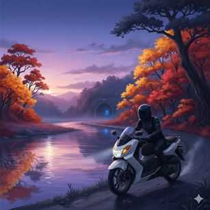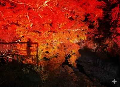 消えたブログの残骸より、2011年11月上旬の話を転記◇----------◇----------◇----------◇----------◇星がキラキラ輝いて綺麗な時間に蓑虫に変身して出発。DR-Z400SMはヘッドライトが点燈するだけなので、アドレス丸で再出発ミストの中をε=ε=ε=ε=(o゜―゜)oブーン 月明かりで幻想的な風景の中を走り、修験道場としては有名な英彦山を登る※画像はAIによる生成(Copilot使用)野峠に至る途中で淡い光がさしてきて、 山が火事?と思えるぐらいに木々が燃えていることに気がつくこの数年はまとまって色が染まることが無かったのでラッキー英彦山山頂では高住神社で休憩を兼ねて、赤く染まった楓の鑑賞。※高住神社の駐車場は紅葉が綺麗なので、毎年訪れています。※画像はAIによる生成(Copilot使用)野峠を下りてくると案山子村があり、ちょこっと訪れたり、 川沿いのまっかに燃えた木々を眺めながら、いったり、きたり、ベストショット。 奥耶馬渓の天然記念物猿飛甌穴群や魔林峡を楽しみながら大分を散策※画像はAIによる生成(Copilot使用)山国から玖珠へと走り、Myブームの立羽田の景や内匠の景などを眺める。立羽田の景は一目八景の裏山にあたり、山々に竹が生えるように岩が生えています。 岩と岩の間には紅葉が見られる。 スクータなので狭い道をグルグル一目八景方面は、AM8時台なのに車が多いので、椎屋耶馬渓(R387)へ 立羽田の景や一目八景と比較して、勝るとも劣らない東奥山七福神を眺め 七福温泉宇戸の庄に下りてくると、県道602沿いを走ると紅葉に囲まれて道 。。。みち内匠の景は昔の参勤交代の道? 池面に生える紅葉が綺麗なので訪れて、ちょっと堪能します。※画像はAIによる生成(Copilot使用)落ち葉を気にしながら、首にはカメラがぶらぶらしながら ε=ε=ε=ε=(o゜―゜)oブーン おっとおととと走り終点にでると。あら、耶馬溪のしだれ桜で有名な光円寺に出たので、一目八景へ ひとおおい。 (uдu) ひとよいしそう。帰りはメイプル耶馬溪も堪能しながら、野峠を越えて帰ってきました。※画像はAIによる生成(Copilot使用)#英彦山 #耶馬渓 #紅葉 #ツーリング #野峠 #高住神社 #猿飛甌穴群 #立羽田の景 #内匠の景 #椎屋耶馬渓 #東奥山七福神