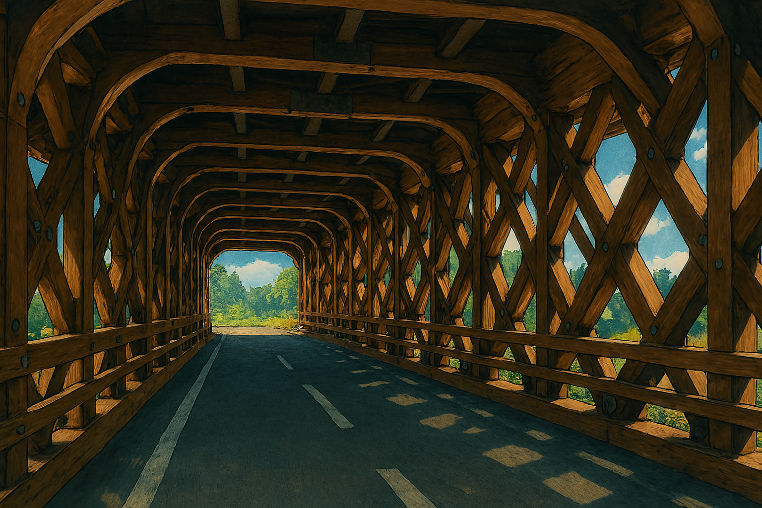 しかも、この橋はただの木造じゃなくて、木と鋼を組み合わせたハイブリッド設計にゃんよ。