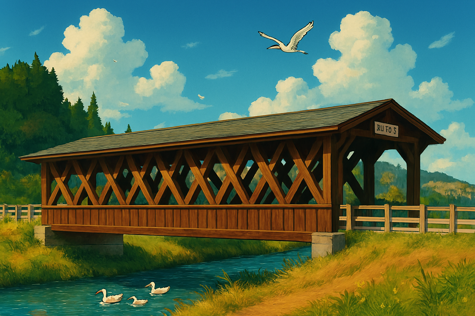 屋根は雨や日差しから守ってくれるおかげで、耐用年数も普通の橋の倍以上にゃ。