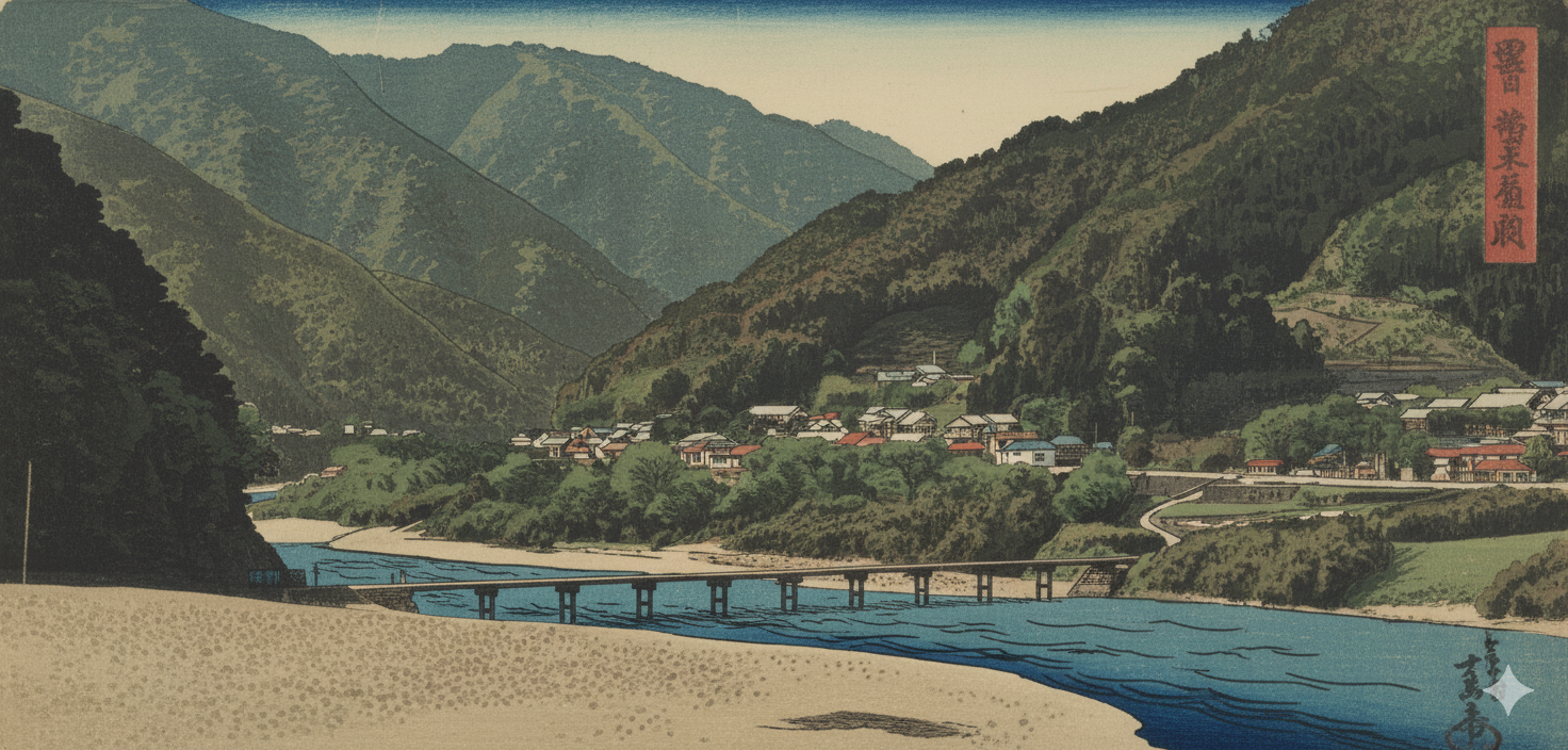 欄干がないのは、流木や濁流に引っかからないようにするため。その潔い設計が、逆に橋の美しさを際立たせていた。