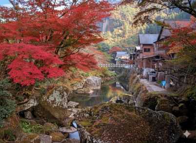 九州の奥ふか〜いにゃん、自然の造形美が息づくにゃん耶馬溪は、紅葉の季節にゃんになると、まさに息をのむにゃんような絶景へと姿を変えるにゃん。