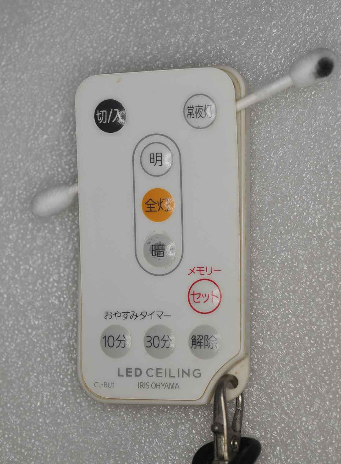 <以下、自己責任で行った作業です。何らかの問題が起きても当方は一切関知致しません。あしからずご了承下さい。>居間のアイリスオーヤマのシーリングライト専用リモコンCL-RU1の反応が悪く電池交換でも変化が無かったので、リモコン特有の「アレ」かと思って「殻割り」して修理しようかと思ったのですが、よーく見たらこのリモコン・・・。殻割りしなくても器状(凹)に成形された樹脂ケースに固定された基板の表面に両面テープでスイッチ部?を貼り付けただけの構造でした。なんて簡単な構造なんでしょ。爪で引っかけたらペリペリっと剥がれてくれそうなので折れないようにそーーっと剥がしていきます。出来た隙間にパーツクリーナーを吹いた綿棒を入れて基板と樹脂?裏にある黒い磁石?を拭き拭き。案の定、綿棒は真っ黒になって出てきました。(接点復活スプレーもあるけどアレはダメな時もあるので今回は使用せず。)拭き掃除が終わったら両面テープの粘着力がしっかり残っていたので元に戻して新しいCR2025電池を入れて動作確認・・・うん、正常反応!!これでリモコンもライト本体も買い換えせずに使えますね。