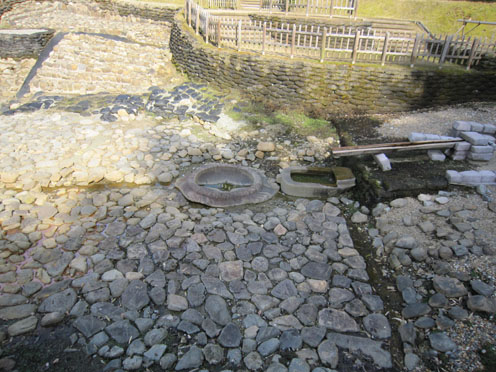 このあたり一体を開発しているときに偶然発見されたのが写真の亀形石造物。斉明天皇が信仰した道教の世界を表す両槻宮の一部ではないかとか禊ぎをしたところではないかとか、これまた別のランティアの方が熱く説明してくださいます。そのちょこっと上には酒舟石!なにに使ったのかはわからないけど、250年間平安時代頃までは何らかの形で使われていたそうです。