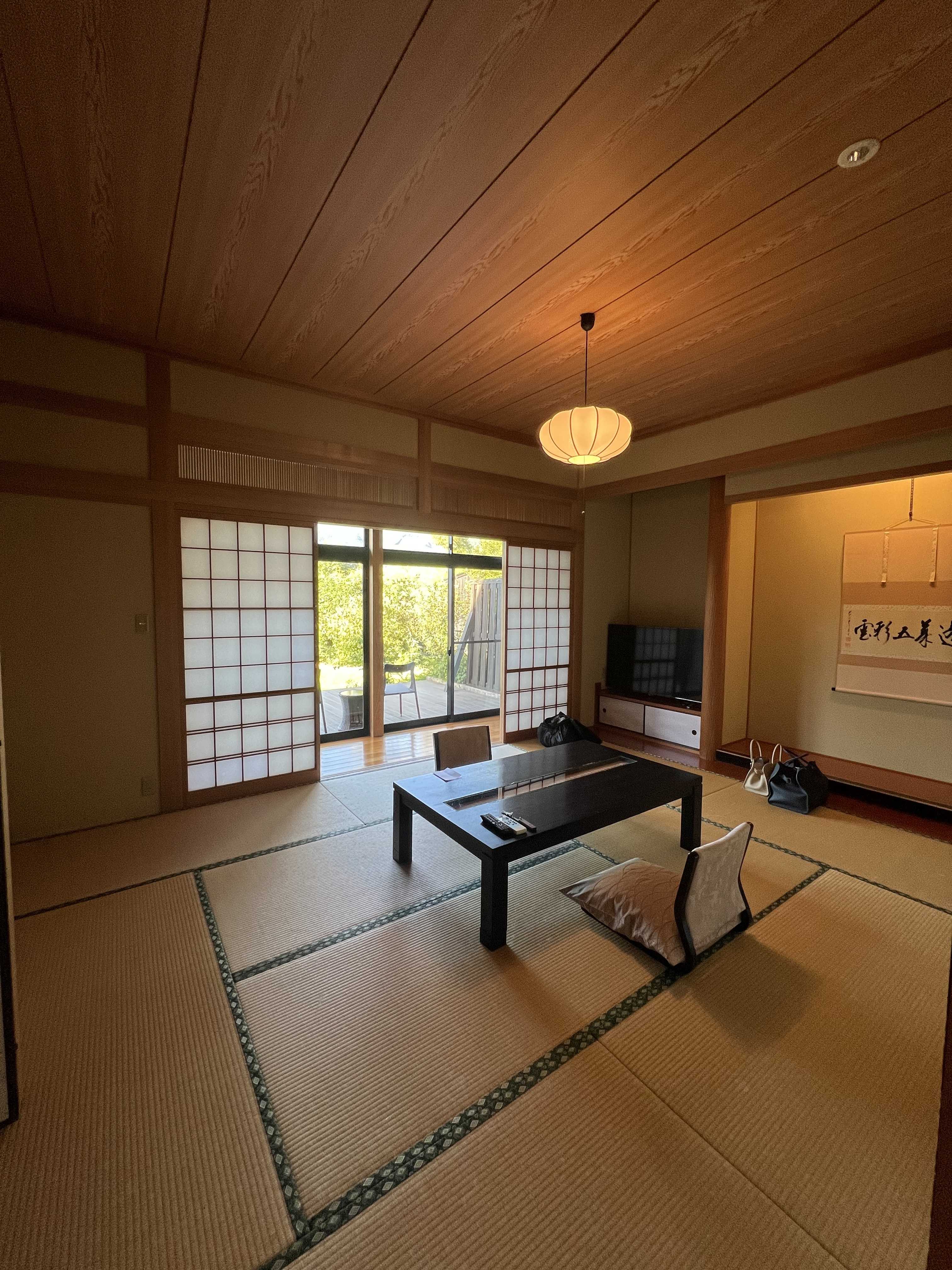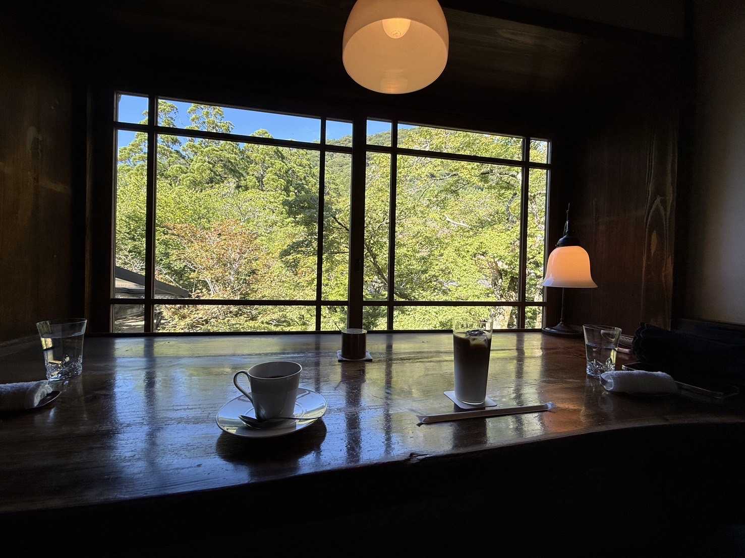 趣のある別棟で緑がキレイなお庭を眺めながらいただく。