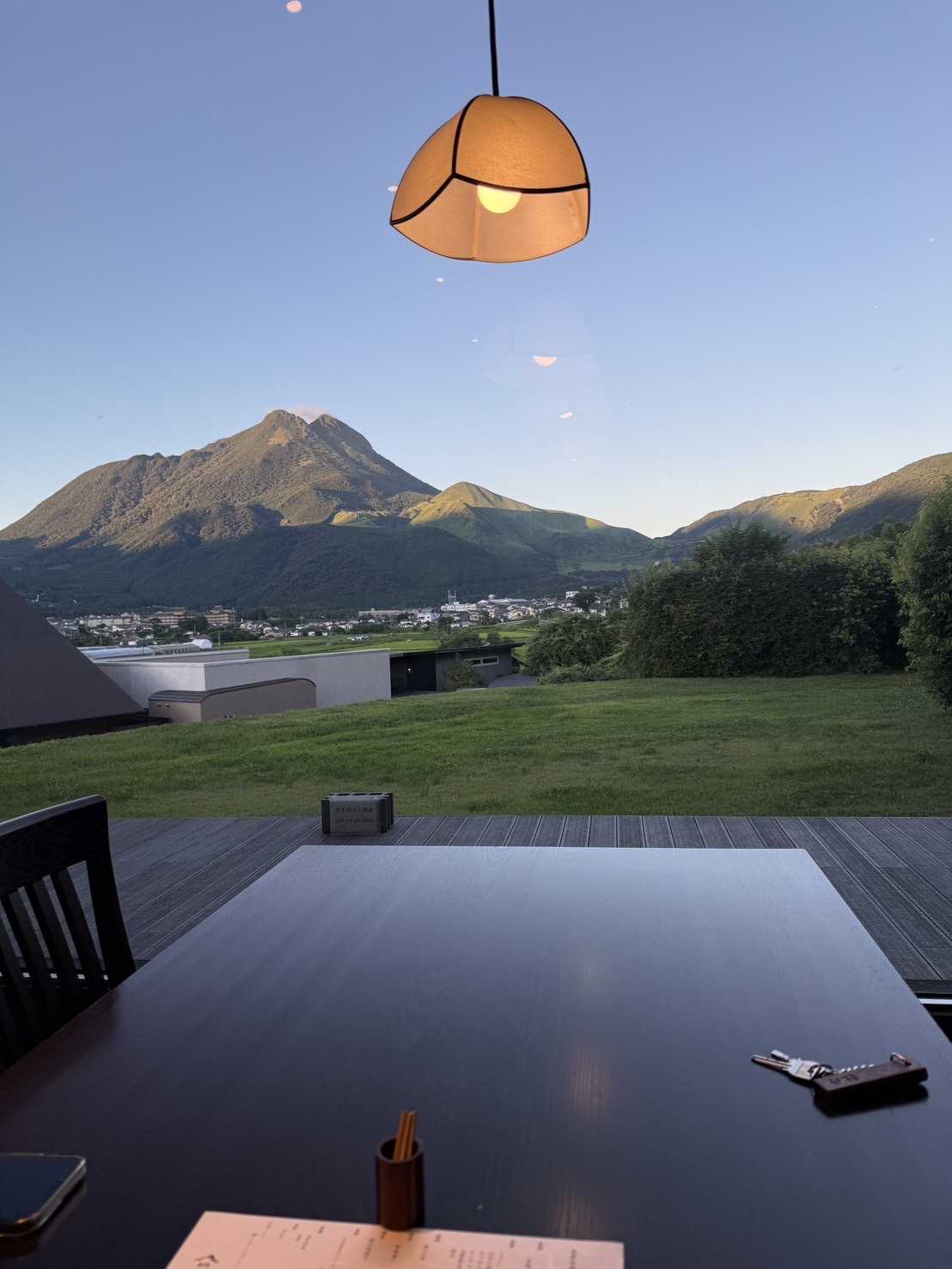 由布岳を見ながらゆっくりと食事を楽しむ。