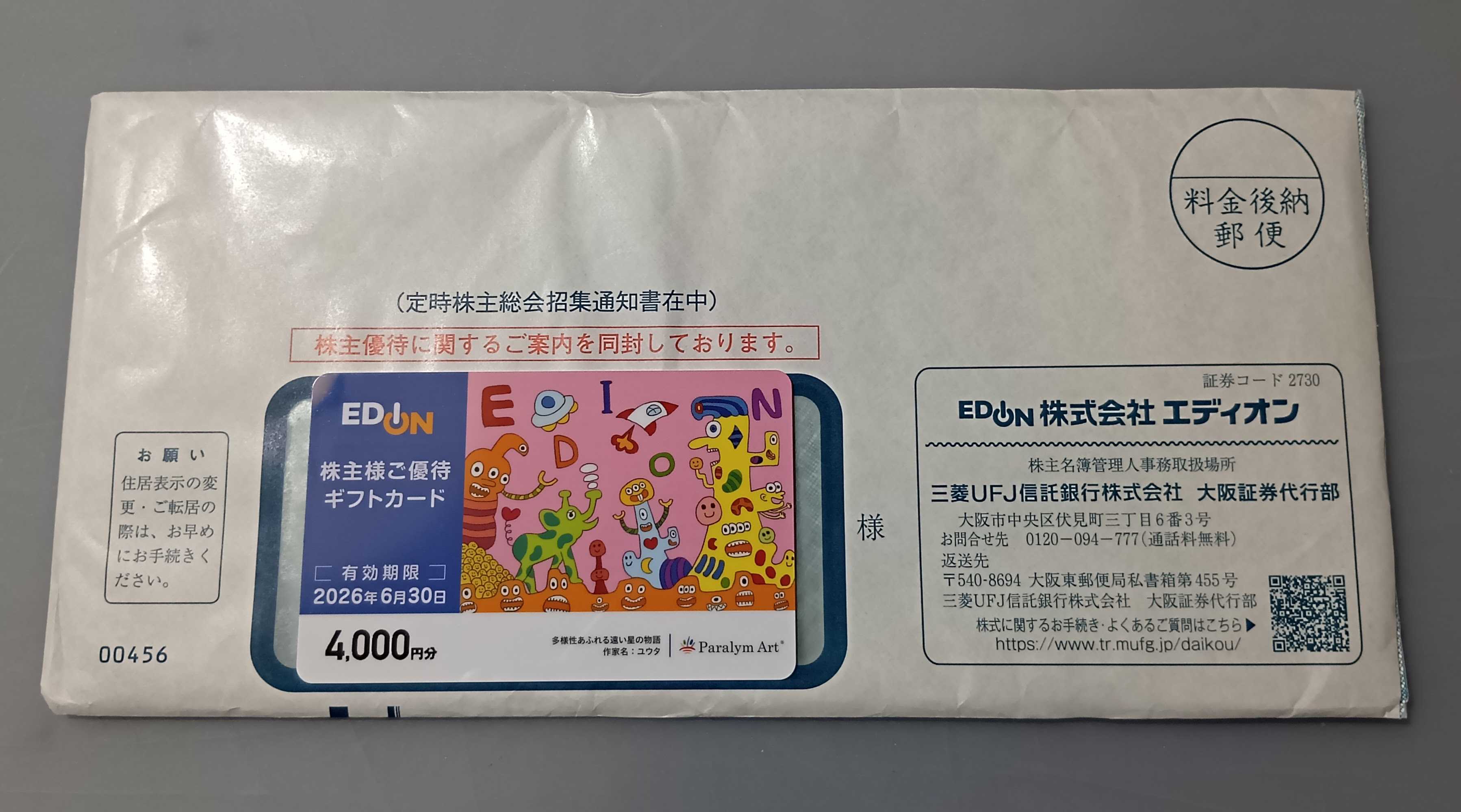 ◆ヨロズから株主優待のご案内が届きました~!ん~?迷うなぁ…なのでクオカードを選んでみました