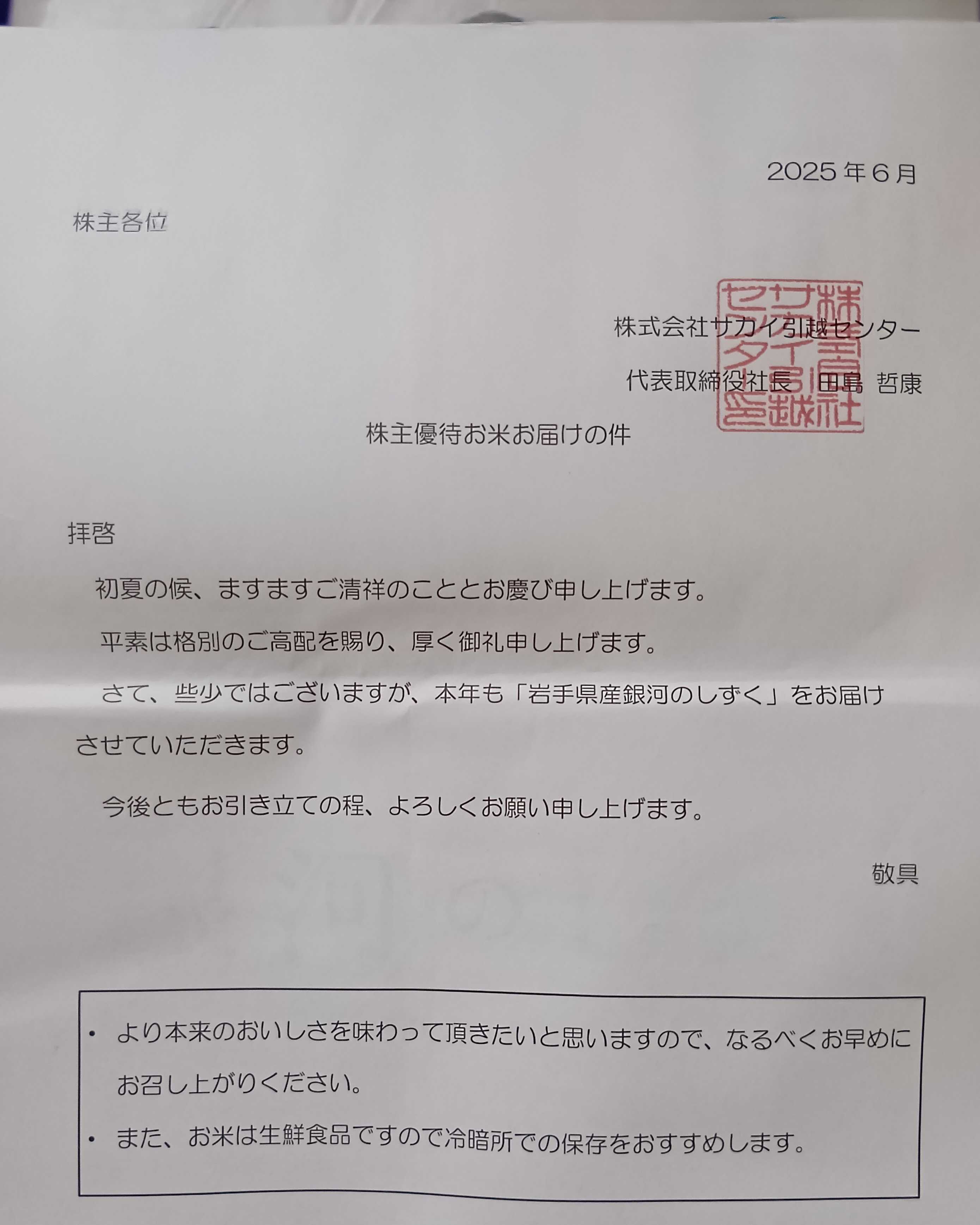 ◆サカイ引越センターから株主優待のお米5キロが届きました~!この時期に5キロとは太っ腹ですわい応援クリックをお願いいたします♪人気ブログランキング