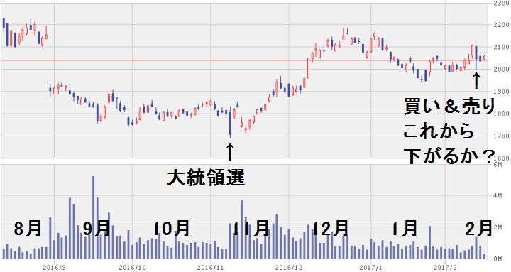 決算で2016年11月頃の価格に下がった大手筋を買いに入りました